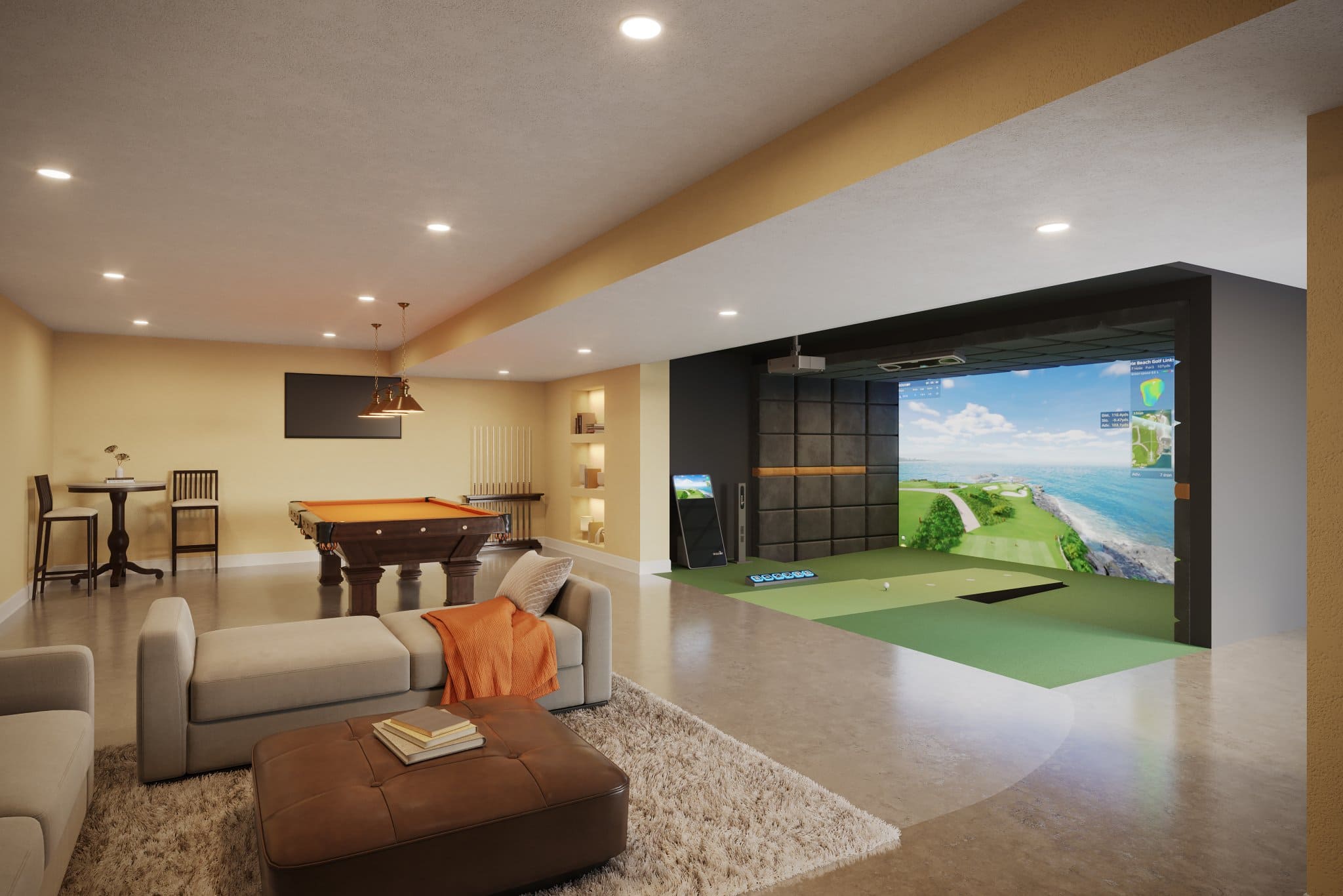 We recommend an absolute minimum height of 2.8m (9.2ft) although we recommend the ideal height to be 3m (9.8ft). This way you will feel comfortable swinging any club.